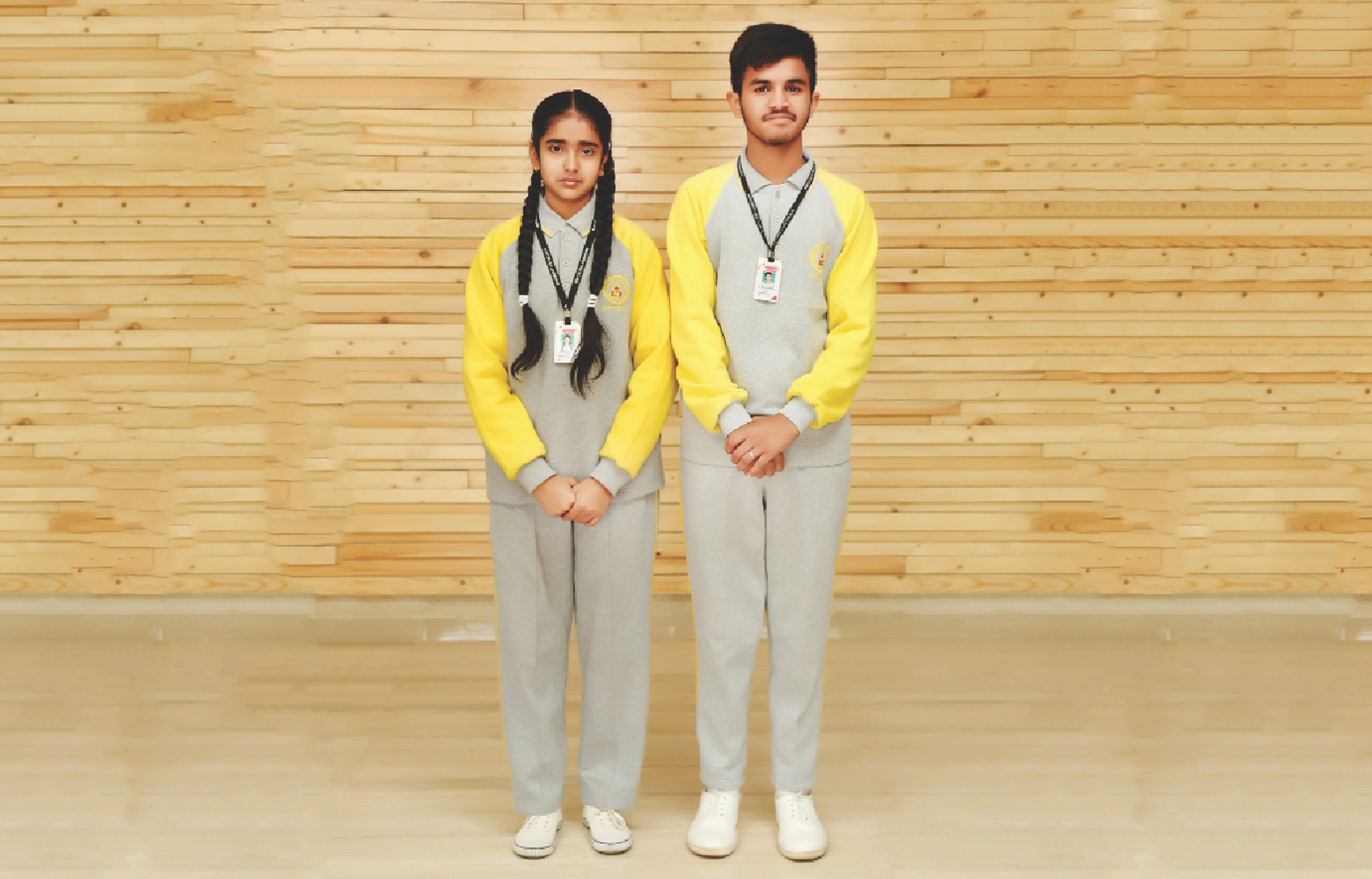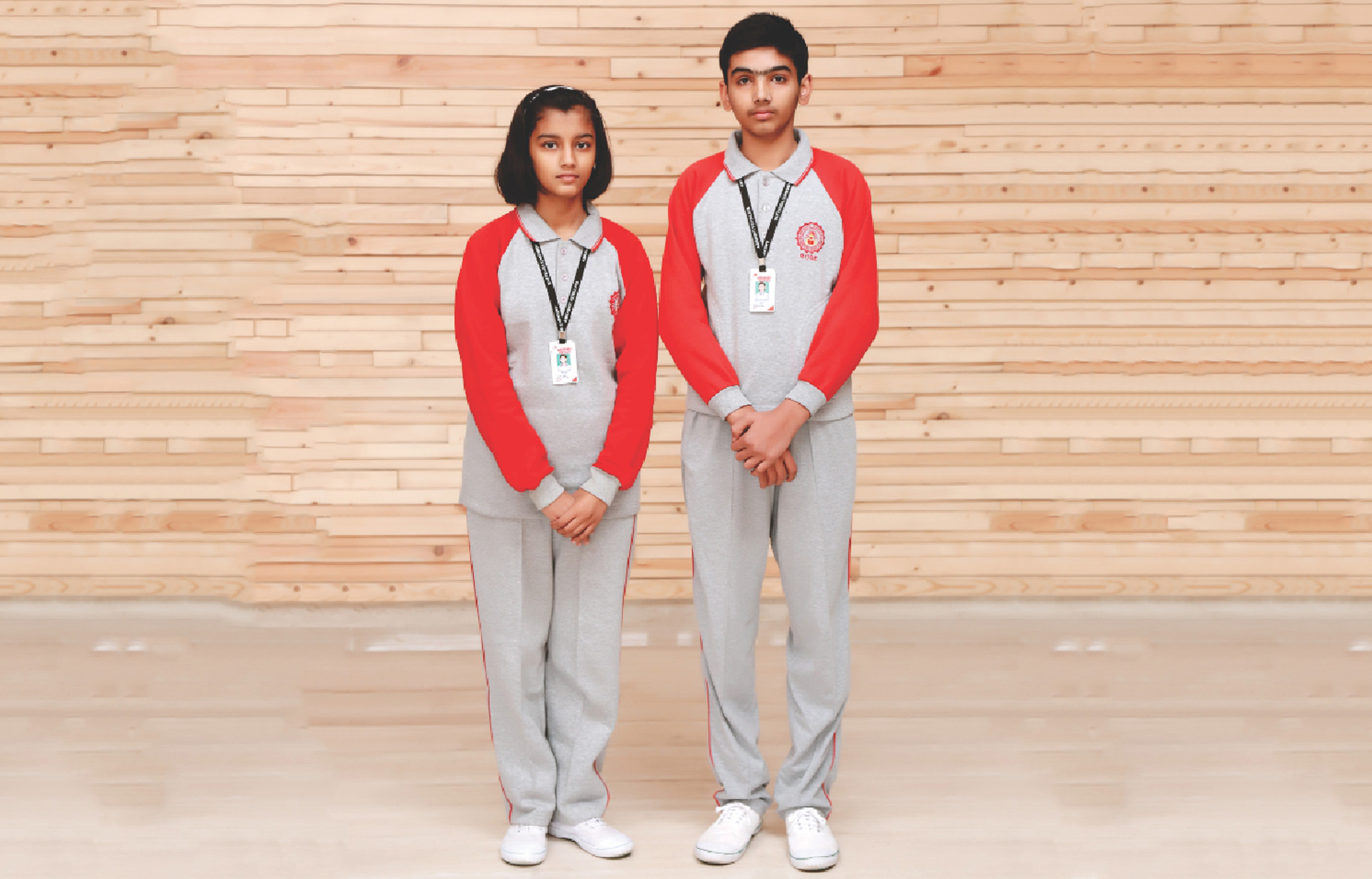 | Classes I- V (For Boys and Girls) | 1. Worsted Grey Trousers 2. Full Sleeve White and Grey check Shirt with School Logo 3. Grey Woolen Socks with Stripes 4. White Uniform with White P.T. Shoes. (On Mondays) 5. Woolen Track Suits of the respective houses with White P.T. Shoes. (On Fridays) 6. Black Shoes with laces /buckles 7. School Belt 8. Twin Set (1 Full, 1 Half) of Pullover 9. Navy Blue Jackets with School Logo (Compulsory from Dec. 1 st onwards) |